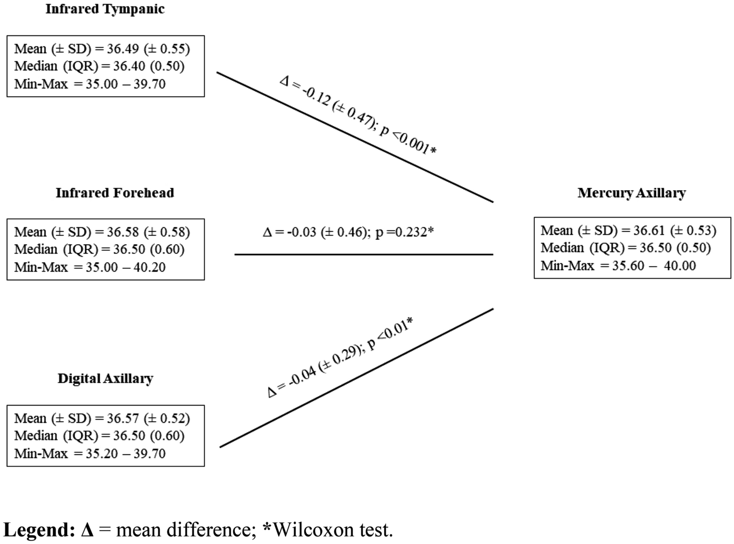 Evaluating The Interchangeability Of Infrared And Digital Devices With The Traditional Mercury Thermometer In Hospitalized Pediatric Patients An Observational Study Scientific Reports